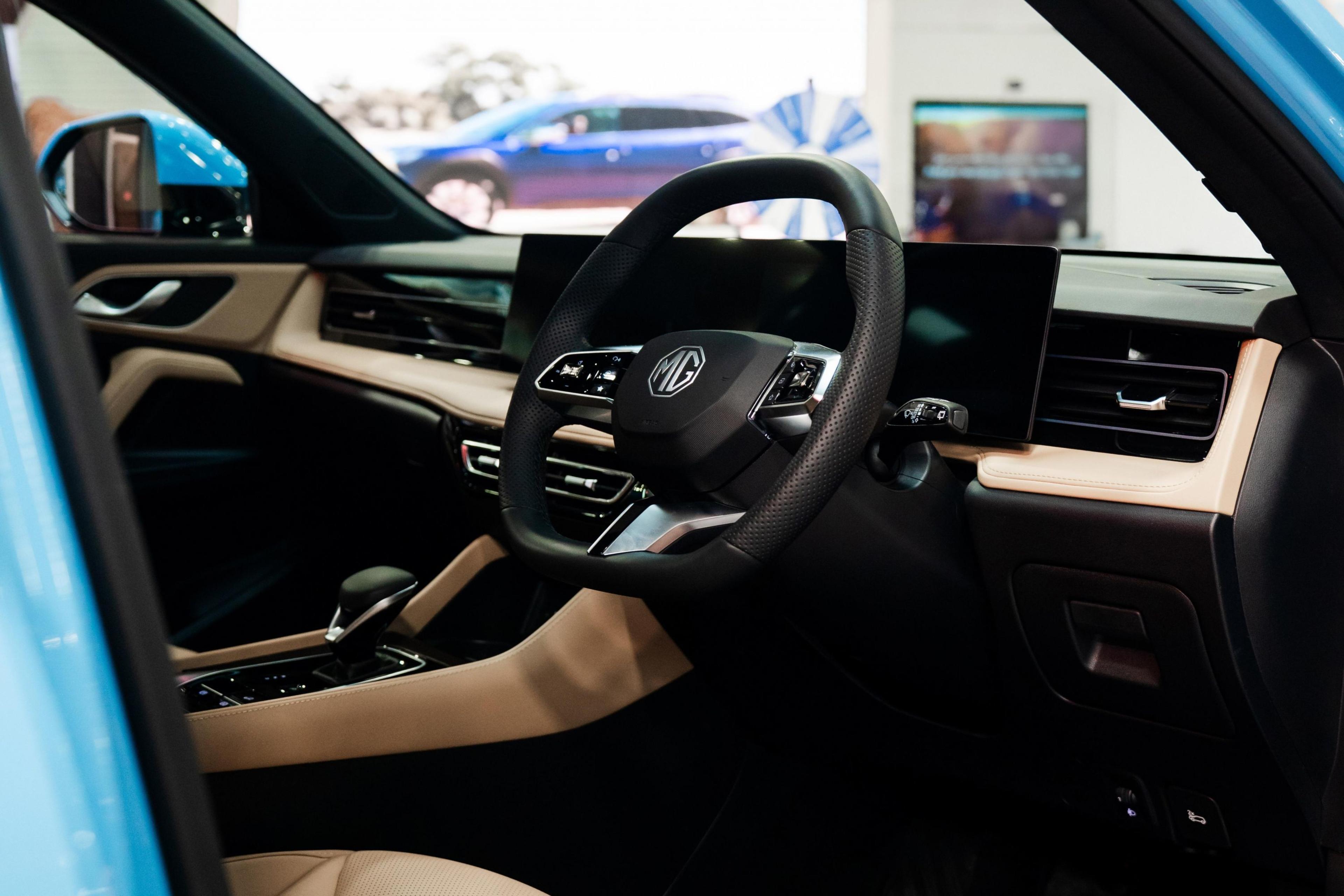 It’s unclear how many variants MG will offer of the HS Hybrid+, though it has shown off one example with tan leather upholstery, dual 12.3-inch screens, a surround-view camera and a wireless phone charger. This appears to correspond with the Essence trim offered in the petrol HS lineup.